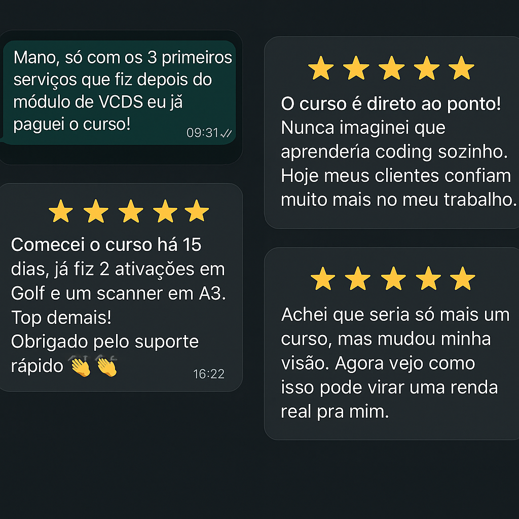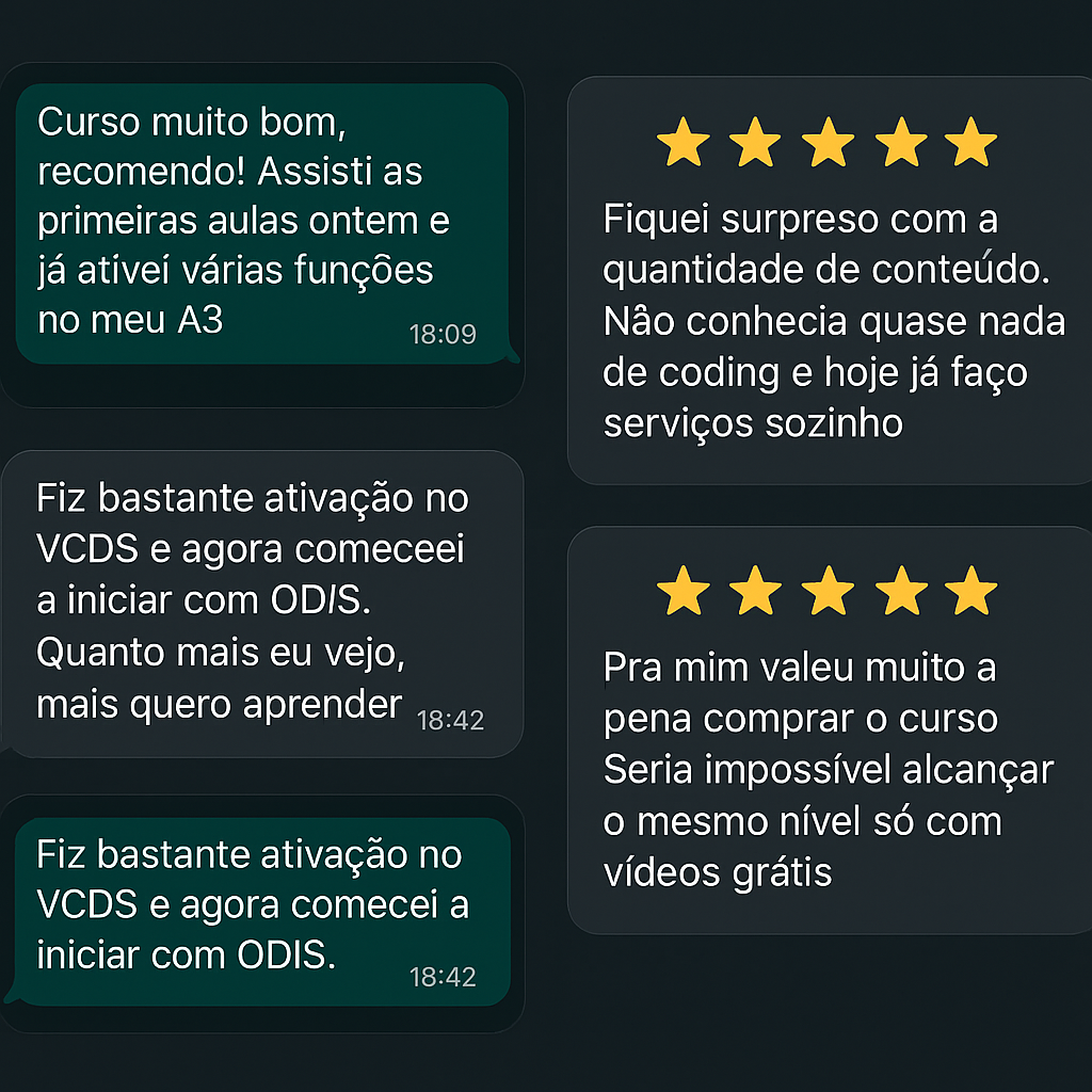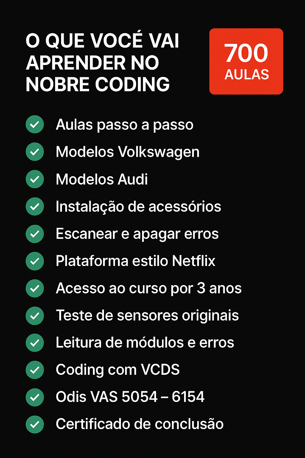 Atenção: o curso não inclui o cabo nem o programa de diagnóstico (VCDS ou ODIS).